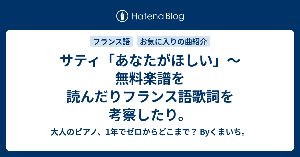 サティ あなたがほしい 無料楽譜を読んだりフランス語歌詞を考察したり 大人のピアノ 1年でゼロからどこまで Byくまいち
