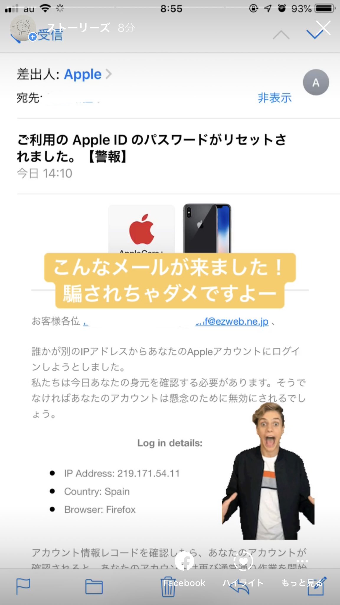 注意喚起 Appleを騙る詐欺メール 高野連のブログ スバルバカ一代 みんカラ